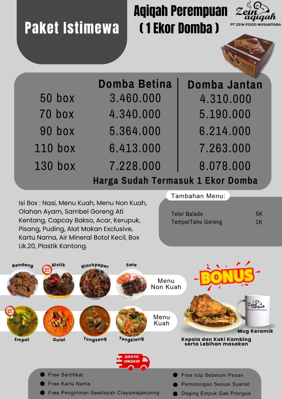 Satu ekor domba, sejuta doa untuk putri tercinta. Semua hidangan istimewa, higienis, dan sesuai sunnah. Praktis tanpa repot, tinggal bagikan penuh keberkahan